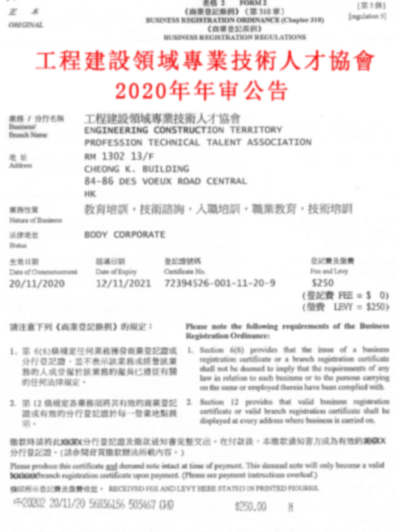 工程建设领域专业技术人才协会已于二〇二一年四月十日向主管单位提交了年审资料,年审期间原登记证继续有效,年审合格,新登记证书附后。